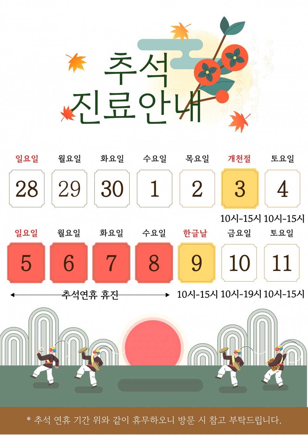 -10월 3일(개천절) 단축진료 10시~15시 진료